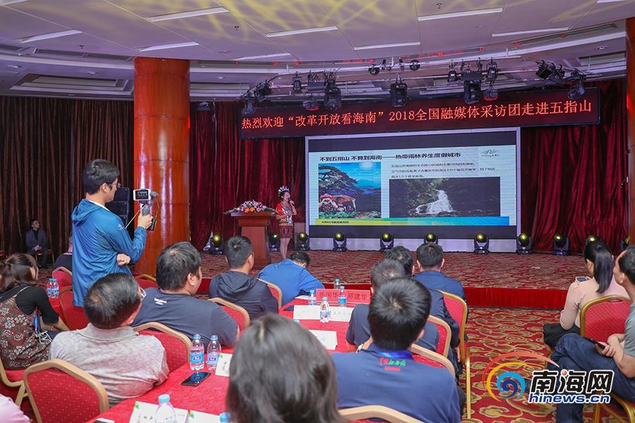 在當(dāng)天的推介會(huì)上,五指山市旅游商務(wù)局工作人員對(duì)來(lái)自全國(guó)60余家重點(diǎn)新聞網(wǎng)站、新聞客戶端的編輯記者作了精彩的旅游資源推介,詳細(xì)介紹五指山獨(dú)特的地理位置、資源形態(tài)、氣候資源、文化底蘊(yùn)以及有著巨大發(fā)展?jié)摿Φ募t色旅游資源。
