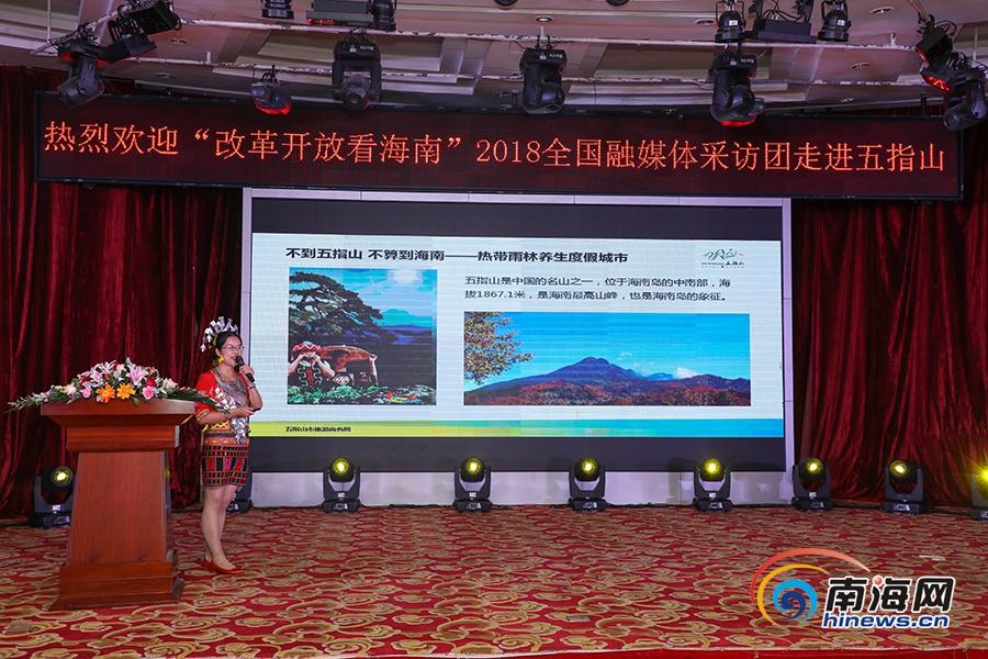 五指山市旅游商務(wù)局工作人員作精彩的旅游資源推介分享。南海網(wǎng)記者李昊攝