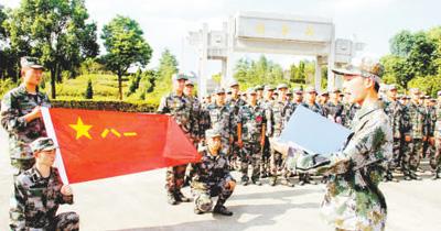 江蘇儀征市200多名預定新兵在“學習王繼才精神,爭做新四有軍人”橫幅上共同簽名,新兵代表面向軍旗宣誓。