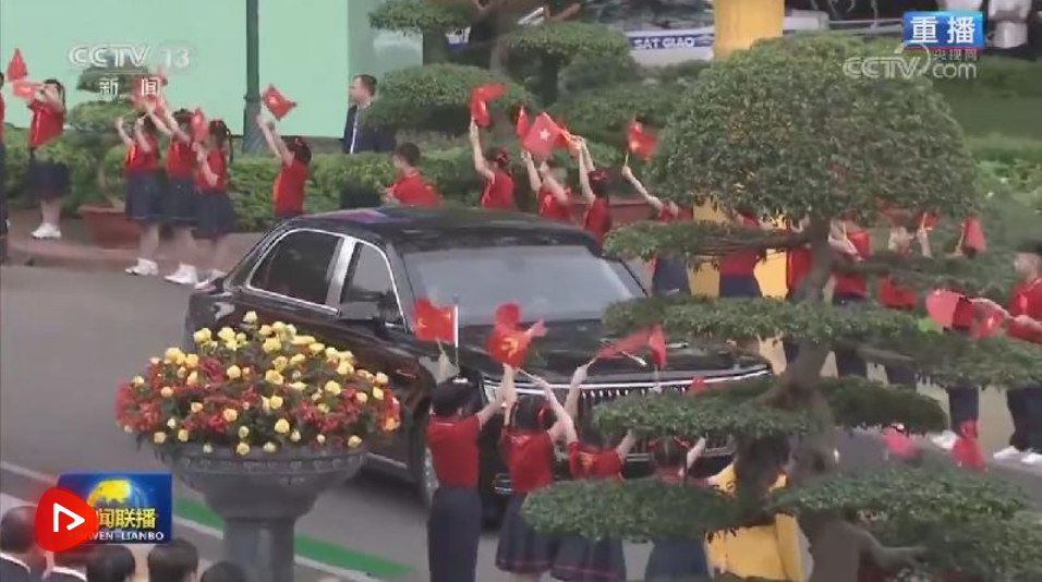歡迎儀式后,習(xí)近平和蘇林一同步行前往越共中央駐地舉行會談。沿途數(shù)百名越南民眾揮舞兩黨兩國旗幟,對習(xí)近平表示最熱烈的歡迎。習(xí)近平向歡迎人群揮手致意。