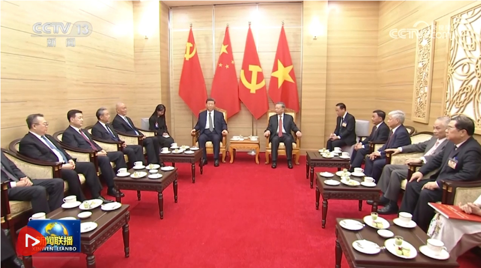 習(xí)近平指出,這次訪問時間雖短,但活動豐富、成果豐碩。雙方重申共同壯大世界社會主義事業(yè)的政治意愿,都期待朝著“六個更”總體目標全面推進兩國戰(zhàn)略合作,都表示抵御外部風(fēng)險挑戰(zhàn),維護地區(qū)和平穩(wěn)定和國際公平正義。我對中越關(guān)系發(fā)展前景充滿信心。雙方要全面落實這次訪問成果,持續(xù)推進中越命運共同體建設(shè)。