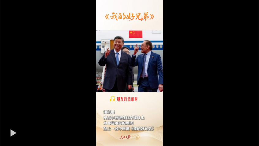 鏡頭記錄下的這些珍貴光影,被安瓦爾總理發(fā)布到個(gè)人的社交媒體上,他還暖心選配《我的好兄弟》這首中文歌作為背景音樂。