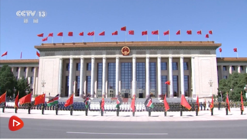 4月24日上午,國家主席習近平在北京人民大會堂同來華進行國事訪問的肯尼亞總統(tǒng)魯托舉行會談。這是會談前,習近平在人民大會堂東門外廣場為魯托舉行歡迎儀式。