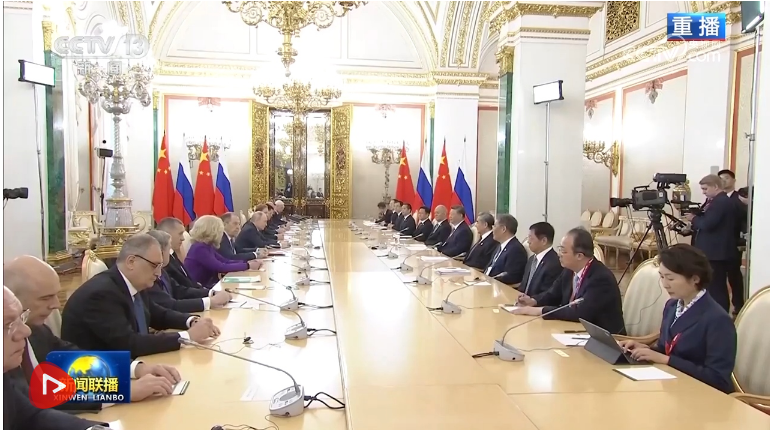 當(dāng)?shù)貢r(shí)間5月8日上午,俄羅斯總統(tǒng)普京同中國國家主席習(xí)近平在莫斯科克里姆林宮舉行會談。兩國元首就中俄關(guān)系和重大國際和地區(qū)問題深入交換意見,一致同意堅(jiān)定不移深化戰(zhàn)略協(xié)作,推動中俄關(guān)系穩(wěn)定、健康、高水平發(fā)展;共同弘揚(yáng)正確二戰(zhàn)史觀,維護(hù)聯(lián)合國權(quán)威和地位,維護(hù)國際公平正義。