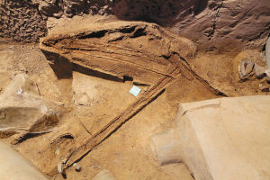 秦俑一號(hào)坑自1974年發(fā)現(xiàn)以來,先后進(jìn)行了兩次正式發(fā)掘。2009年6月13日,沉寂了24年之久的秦俑一號(hào)坑迎來了第三次大規(guī)模考古發(fā)掘,目前共出土戰(zhàn)車2乘,陶馬3組12匹,陶俑170余件,小件器物近400件(組);清理戰(zhàn)鼓、篋、兵器柲、弓弩、箭箙、韜等重要遺跡數(shù)十處。