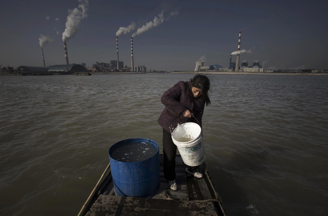 楊林港的一名婦女正從長(zhǎng)江里打水。楊林港共有50多戶漁民,幾十年來一直以捕魚為生,喝的都是長(zhǎng)江水。過去幾年,長(zhǎng)江的污染越發(fā)嚴(yán)重,散發(fā)出一股奇怪的味道。2003……