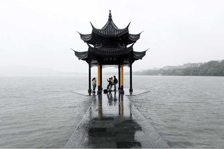 臺風(fēng)致西湖水外流 杭州“水漫金山”