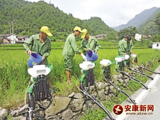 寧陜專(zhuān)業(yè)化防治隊(duì)進(jìn)行水稻后期病蟲(chóng)害防治