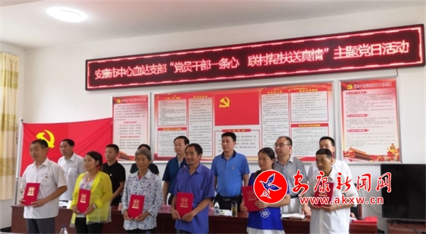 安康新聞網(wǎng)訊(通訊員 鄧娟)為認(rèn)真貫徹市委組織部關(guān)于在基層黨員中開展習(xí)近平新時(shí)代中國(guó)特色社會(huì)主義思想大學(xué)習(xí)大培訓(xùn)的工作要求,積極開展“黨員領(lǐng)導(dǎo)干部送黨課到基層”活動(dòng),7月17日上午,安康市中心血站黨支部書記、站長(zhǎng)胡章學(xué)帶領(lǐng)血站黨員、各科主任前往結(jié)對(duì)幫扶貧困村——旬陽(yáng)縣麻坪鎮(zhèn)老莊溝村開展“黨員干部一條心,聯(lián)村幫扶送真情”主題黨日活動(dòng)。