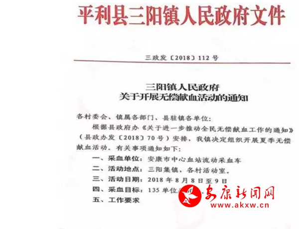 安康新聞網(wǎng)訊(通訊員 汪平)玫瑰予人,手留余香。8月8日-9日,伴隨著安康市中心血站獻(xiàn)血車(chē)在平利縣三陽(yáng)鎮(zhèn)鎮(zhèn)頭村間蜿蜒,一顆顆愛(ài)心在涌動(dòng),一滴滴熱血在融情,文明奉獻(xiàn)之花齊開(kāi),和諧大愛(ài)之花怒放!