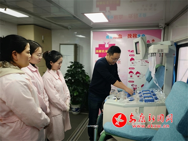 上午,為了提升新轉至機采血小板采集崗位員工的技能水平,單位邀請設備廠家工程師到郵政獻血房車對新上崗進行了血細胞分離機使用的系統(tǒng)培訓。培訓中,重點向新上崗員工講授了血小板的功能與活性、血細胞分離機的構造與采集原理、機器基本操作與管路安裝和機器操作過程中的注意事項等內(nèi)容。使新上崗員工既理解和掌握了血細胞分離機的工作原理和特點,又進行了實踐操作練習,促使將學到的理論知識迅速運用到實際工作中去。