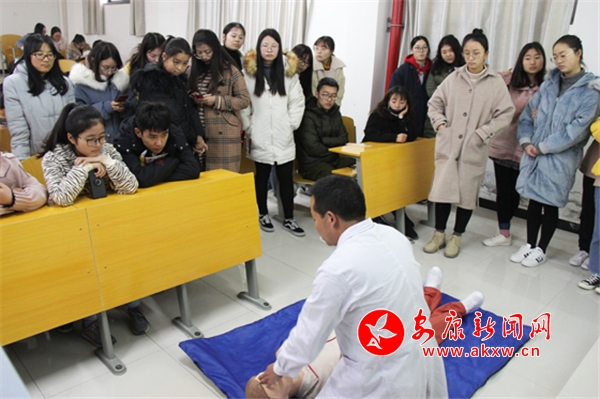 此次培訓(xùn)分為兩部分,第一部分由血源管理科侯捷擔(dān)任主講,培訓(xùn)以“無償獻(xiàn)血•點亮生命”為主題,將“無償獻(xiàn)血的概念及重要意義”、“無償獻(xiàn)血的基本情況”、“什么人可以獻(xiàn)血”、“無償獻(xiàn)血的好處”、“無償獻(xiàn)血注意事項”、“無償獻(xiàn)血的普遍誤區(qū)”等內(nèi)容結(jié)合起來,用生動有趣的語言為大家上了一堂無償獻(xiàn)血科普知識培訓(xùn)課。培訓(xùn)第二部分由獻(xiàn)血服務(wù)科劉潤安主講“心肺復(fù)蘇”,并現(xiàn)場為所有同學(xué)演示了心肺復(fù)蘇急救的全過程,同時還邀請了幾位感興趣的同學(xué)上臺,指導(dǎo)他們對人體模型進(jìn)行模擬演練,現(xiàn)場互動連連,氣氛十分熱烈。