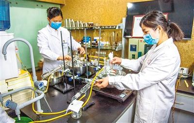 實驗開始30分鐘后,記者看到,燒瓶中的石油醚由原本的無色透明變?yōu)榱说狞S色,這說明湯圓中的油脂已被提取出來。這時燒瓶中的液體其實已不僅僅是石油醚,而是石油醚和油脂的混合物。此時,實驗的第一個大步驟——油脂提取已經(jīng)完成。