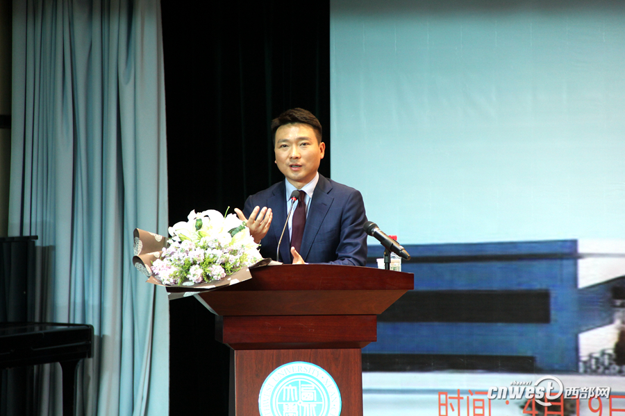 康輝向現(xiàn)場(chǎng)學(xué)生講述自己是如何進(jìn)入中央電視臺(tái)的。