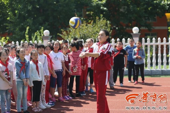 昨日上午11時(shí)許,華商報(bào)記者在長安師范附屬小學(xué)的操場上看到正上體育課的楊肖文欣,她站在班級最前列,同學(xué)大部分只有她肩膀高。