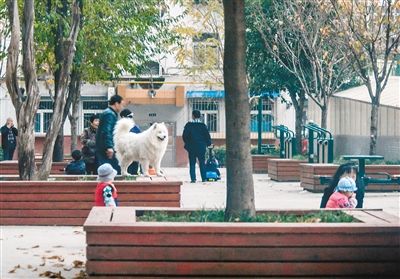11月7日下午,記者分別來到這兩個小區(qū)進(jìn)行走訪。在鳳棲西路寧東林業(yè)局家屬院看到,下午六點多的小區(qū)小廣場上,不少居民在健身鍛煉,還有不少居民帶著小孩子活動。突然有一只白色的大型犬竄入人群四處亂竄,一時間不少居民嚇得紛紛抱起孩子躲避。另外小廣場地上,不時能看到狗的糞便。