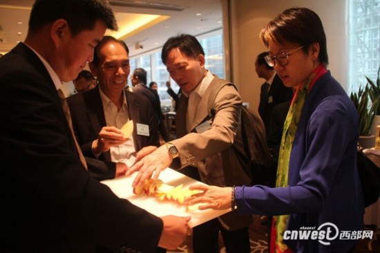 “獼猴桃營(yíng)養(yǎng)價(jià)值高,在香港很受歡迎。目前香港的獼猴桃大部分都是從新西蘭、加拿大進(jìn)口的,看了陜西的獼猴桃,我覺(jué)得我們應(yīng)該有合作的機(jī)會(huì)!毕愀酃P架山獅子會(huì)基金籌備事務(wù)主席陳笑玲在與眉縣秦旺果友獼猴桃專業(yè)合作社的銷售部經(jīng)理武繼宏交流后,陳笑玲當(dāng)場(chǎng)留下電話,希望在會(huì)后有進(jìn)一步的交流。
