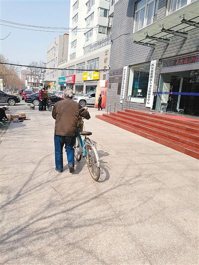 3月8日中午11時(shí)許,姜全榮推著自行車急著趕回家,“今天是兒子的透析日,我還要陪他去醫(yī)院。”(王海鵬)