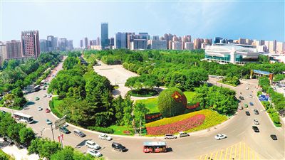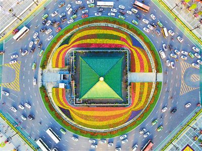 南二環(huán)道路中央?yún)^(qū)域鮮花盛開,綠草茵茵。 記者 謝偉 攝