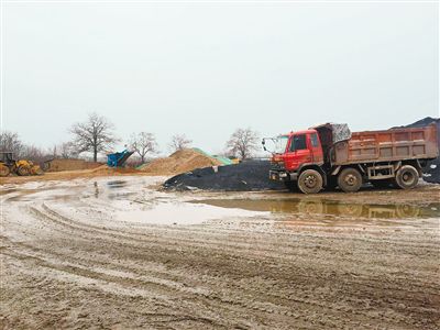 隨后,記者來到國際港務區(qū)秦漢大道與西韓路十字西南,市鐵腕治霾辦3月12日曾檢查過西韓路西側(cè)的二灰石及沙石料場,當時場內(nèi)存在大面積沙石、二灰石料、白灰未按要求覆蓋,場內(nèi)車行道路浮土較厚,沖洗設備不能正常使用,導致車輛帶土上路長距離污染西韓路。市鐵腕治霾辦向國際港務區(qū)管委會下發(fā)了督辦單,要求5個工作日內(nèi)整改。3月20日是下發(fā)督辦單后的第6個工作日,記者對該料場進行了回訪,發(fā)現(xiàn)場內(nèi)因為前幾天下雨,泥濘不堪,不難看出,晴天時存在較厚浮土。同時,場內(nèi)依舊有大量渣土未覆蓋完善。