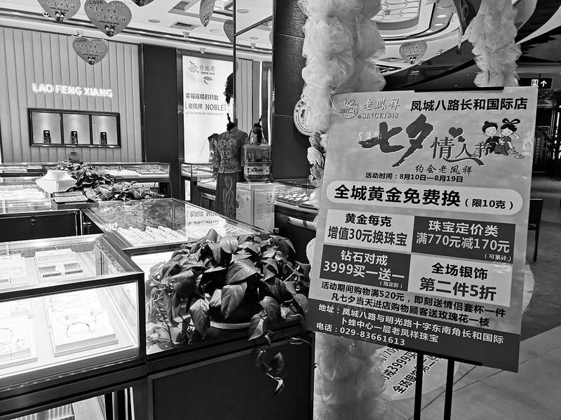 商場(chǎng)里一些商家打出﹃七夕﹄活動(dòng)廣告