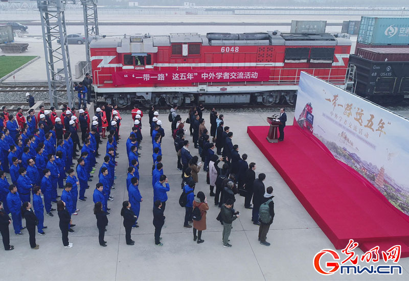 11月13日—16日,“‘一帶一路’這五年”中外學(xué)者交流活動(dòng)在西安舉辦。此次活動(dòng)由中央網(wǎng)信辦網(wǎng)絡(luò)評(píng)論工作局指導(dǎo),光明網(wǎng)主辦,陜西省委網(wǎng)信辦、中國(guó)鐵路西安局集團(tuán)有限公司共同協(xié)辦。來(lái)自外交部、中科院、中國(guó)社科院、中國(guó)人民大學(xué)、北京師范大學(xué)、外交學(xué)院、上海社科院等國(guó)內(nèi)高校和科研機(jī)構(gòu),以及來(lái)自美國(guó)、德國(guó)、保加利亞、尼泊爾等國(guó)家的外籍專家,13家中央新聞網(wǎng)站的媒體采編人員參與此次調(diào)研活動(dòng)。圖為行駛中的中歐班列。(季春紅、張瑜/圖)