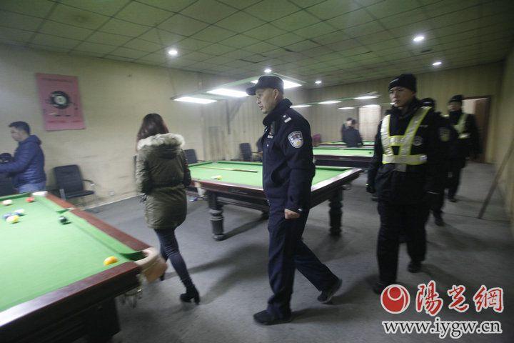 民警在一家臺(tái)球廳進(jìn)行檢查。