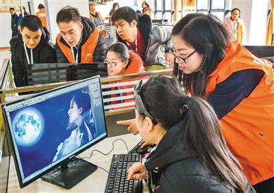 殘疾人學(xué)員在西安市殘疾人創(chuàng)業(yè)孵化基地學(xué)習(xí)平面設(shè)計(jì)技術(shù) 記者 王健 攝