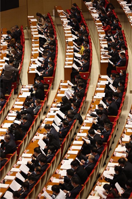 會場布置簡樸,氣氛莊重熱烈。大會主席臺上,帷幕正中的國徽在鮮艷的紅旗映襯下熠熠生輝。主席臺對面懸掛著“高舉習近平新時代中國特色社會主義思想偉大旗幟,把握新發(fā)展階段,貫徹新發(fā)展理念,構建新發(fā)展格局,只爭朝夕、真抓實干,奮力譜寫陜西新時代追趕超越新篇章”的橫幅,鼓舞人心、催人奮進。大會主席團常務主席劉國中、胡衡華、劉小燕、姜鋒、朱靜芝、郭青、梁宏賢、戴征社、郭大為、韓水岐在主席臺前排就座。在主席臺就座的還有:趙一德、韓勇、馬中平、張廣智、梁桂、徐新榮、王曉、王興寧、莊長興、王浩、楊志斌、大會主席團其他成員,副省長,省政協(xié)副主席,省高級人民法院院長,省人民檢察院代檢察長,在我省的十三屆全國人大常委會委員,省軍區(qū)、武警陜西省總隊主要負責人,在我省的副部級高等院校主要負責人,省人大代表、省政協(xié)委員中的省級干部等。擔任過我省正省級職務在陜西的老同志、其他非住會列席人員通過電視、網(wǎng)絡收看大會現(xiàn)場直播。省十三屆人大五次會議應到代表559人,出席本次全體會議的代表521人,符合法定人數(shù)。9時整,主持會議的劉國中宣布:陜西省第十三屆人民代表大會第五次會議開幕。全體起立,奏唱國歌。
