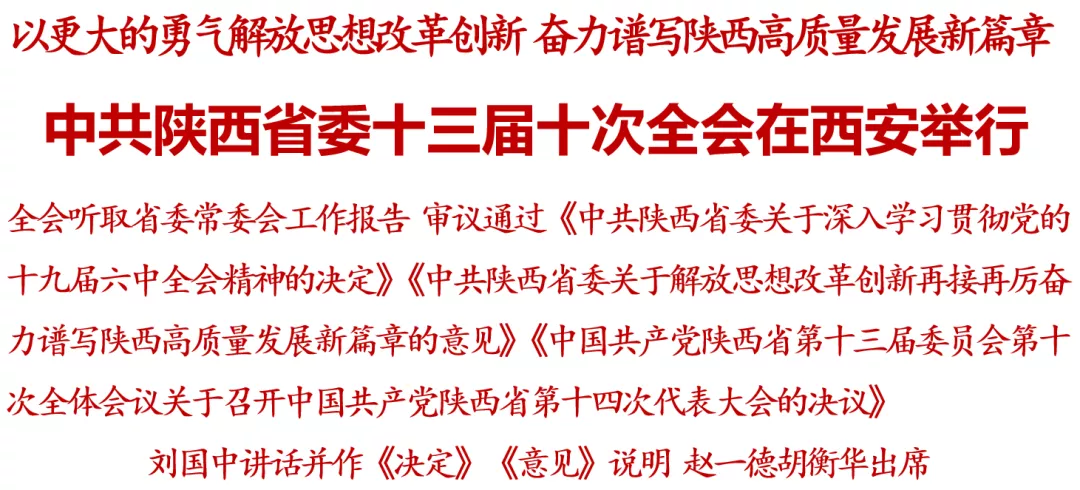 全會以習(xí)近平新時代中國特色社會主義思想為指導(dǎo),全面貫徹黨的十九大和十九屆二中、三中、四中、五中、六中全會精神,深入學(xué)習(xí)貫徹習(xí)近平總書記“七一”重要講話和來陜考察重要講話重要指示,審議通過《中共陜西省委關(guān)于深入學(xué)習(xí)貫徹黨的十九屆六中全會精神的決定》、《中共陜西省委關(guān)于解放思想改革創(chuàng)新再接再厲奮力譜寫陜西高質(zhì)量發(fā)展新篇章的意見》和《中國共產(chǎn)黨陜西省第十三屆委員會第十次全體會議關(guān)于召開中國共產(chǎn)黨陜西省第十四次代表大會的決議》,總結(jié)今年工作,部署明年任務(wù),達(dá)到了統(tǒng)一思想、凝心聚力、明確目標(biāo)、鼓勁加油的目的。