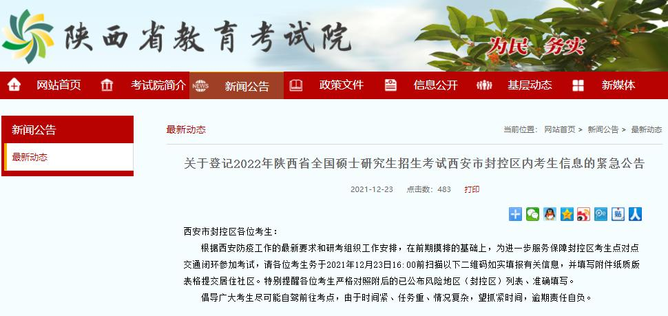 西安市封控區(qū)內(nèi)考生信息的緊急公告