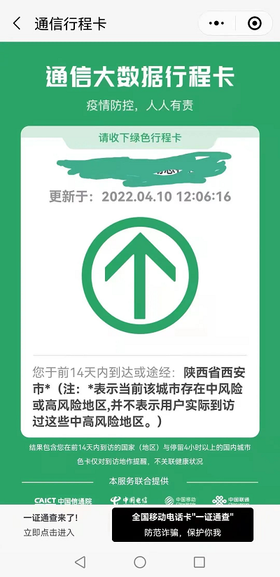 A:行程卡分析的是手機(jī)信令和話單數(shù)據(jù),因此有行程數(shù)據(jù)的前提是您在使用手機(jī)的過程中產(chǎn)生了這些數(shù)據(jù)。遇到查不到行程的問題,您可以嘗試多打幾通電話,或關(guān)閉Wi-Fi連接使用一下4G流量,通常第二天就能查到數(shù)據(jù)了。為了避免因相鄰城市基站覆蓋造成的位置偏差,行程卡設(shè)置了滿足4小時(shí)為駐留的判斷條件,所以,在一天內(nèi),最早-最晚的通話或流量使用記錄時(shí)間跨度需要超過4小時(shí)(比如早上7點(diǎn)一次,中午12點(diǎn)一次),才能滿足要求。
