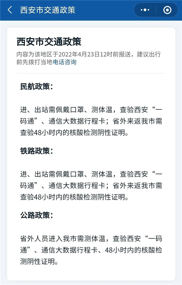 陜西省內各市最新的疫情防控政策來了。ń刂4月23日)建議出行先撥打當?shù)仉娫捵稍儯?/strong>M2Z安康新聞網(wǎng)