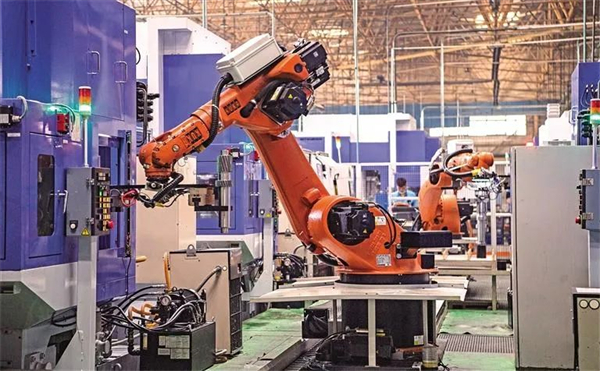5月10日,工業(yè)機器人在法士特集團重型汽車變速器軸類產(chǎn)品自動化生產(chǎn)線上作業(yè)。記者 袁景智攝