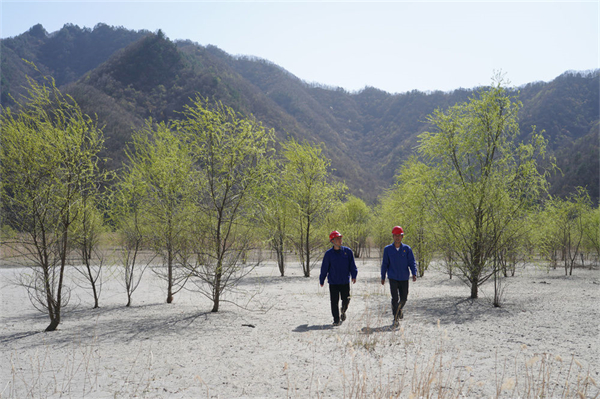 4月7日,金堆城鉬業(yè)集團有限公司工作人員在經(jīng)過生態(tài)治理后的木子溝尾礦庫內(nèi)巡查。新華社記者 邵瑞 攝