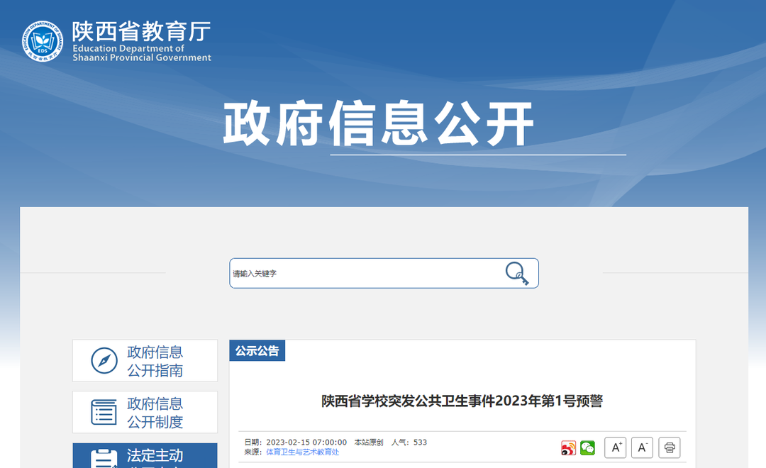 2023年2月,陜西省學(xué)校和幼兒園陸續(xù)開學(xué),呈現(xiàn)人員流動(dòng)性大、聚集性強(qiáng)等特點(diǎn)。據(jù)WHO發(fā)布的公報(bào)稱新冠感染繼續(xù)構(gòu)成國(guó)際關(guān)注的突發(fā)公共衛(wèi)生事件,且全球繼續(xù)報(bào)告新型變異毒株。開學(xué)季應(yīng)持續(xù)高度警惕,樹立多病共防意識(shí),確保師生安全。根據(jù)省疾病預(yù)防控制中心突發(fā)公共衛(wèi)生事件風(fēng)險(xiǎn)評(píng)估報(bào)告,結(jié)合既往突發(fā)公共衛(wèi)生事件發(fā)生情況及傳染病流行特征分析,全省學(xué)校和幼兒園應(yīng)特別關(guān)注以下事件: