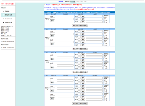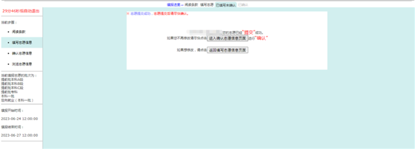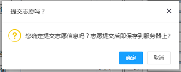 全部志愿信息輸入完畢后,必須點(diǎn)擊“提交”按鈕,否則服務(wù)器無(wú)法接收到志愿信息。全部志愿確定無(wú)誤后,必須點(diǎn)擊“確認(rèn)”按鈕。在點(diǎn)擊“確認(rèn)”按鈕之前,可以任意修改所填志愿。