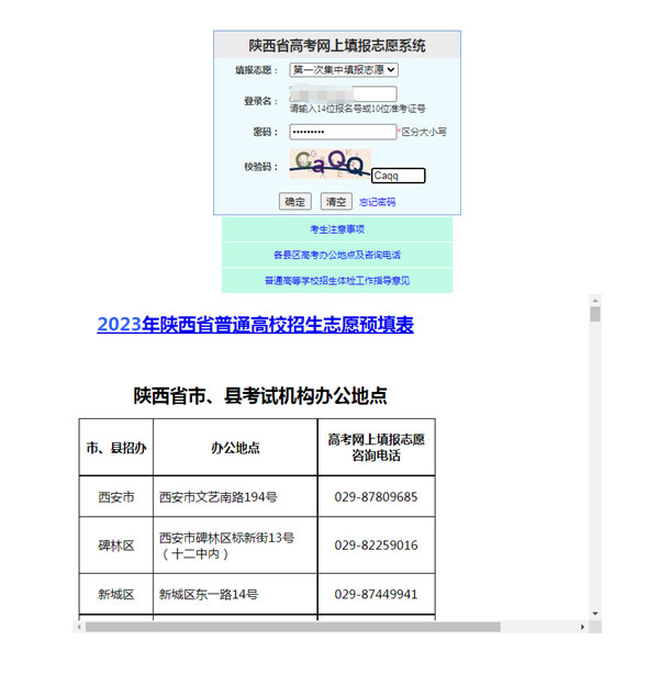1.考生憑網(wǎng)上報(bào)名時(shí)所用報(bào)名號(hào)(14位)或準(zhǔn)考證號(hào)(10位)及密碼登錄網(wǎng)上填報(bào)志愿系統(tǒng),網(wǎng)址為陜西省教育考試院門(mén)戶(hù)網(wǎng)站(https://www.sneea.cn)或陜西招生考試信息網(wǎng)(https://www.sneac.com)。