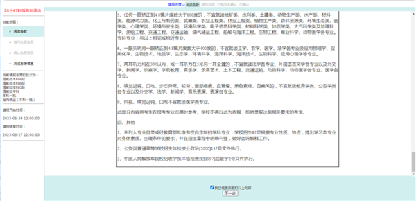 2.認(rèn)真閱讀《2023年陜西省高考網(wǎng)上填報(bào)志愿說(shuō)明》,選擇“我已閱讀并熟知以上內(nèi)容”,并點(diǎn)擊“下一步”。