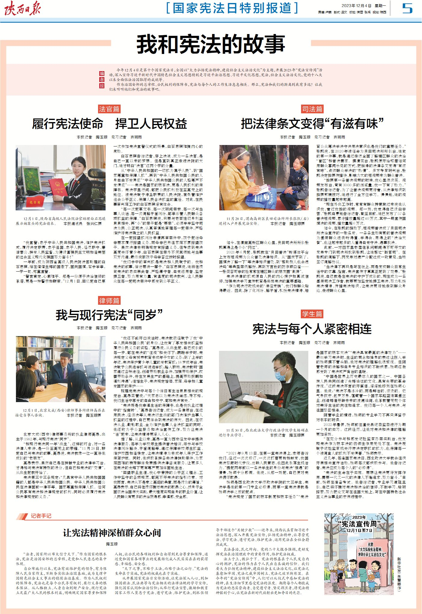 這幾年,每逢國家憲法日,西北政法大學就會組織開展相關宣傳活動,楊碩每次都積極參與。他告訴記者,憲法應成為每個人的“必修課”。