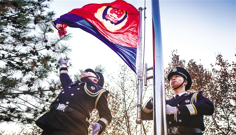西安市公安局舉行警旗升旗儀式(資料照片)。通訊員 龍云攝
