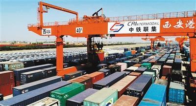 西安國際港務(wù)區(qū) (記者 李安定 攝) 9月初,一列從哈薩克斯坦?jié)M載4000多噸小麥的國際貨運(yùn)班列“長安號”停靠在國際港務(wù)區(qū),西安海關(guān)工作人員現(xiàn)場驗(yàn)核,企業(yè)通過……