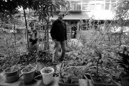 昨日,劉大福(右)、牛佩娟老兩口正在花園里打理他們養(yǎng)的花草 記者 黃利健 攝劉大福家門前,有個半圓形、60平方米的花園,一到春天,幾十種花爭相開放,引得鄰居……