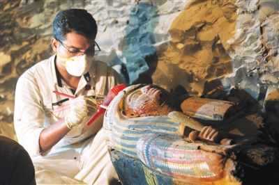 埃及文物部日前宣布,埃及考古人員在該國南部盧克索發(fā)現(xiàn)一座古埃及十八王朝時期為供奉阿蒙神服務(wù)的金匠之墓,該墓已有約3400年歷史。圖為9月9日,在埃及盧克索,考古人員在阿蒙神金匠墓內(nèi)工作。 7p6安康新聞網(wǎng)
