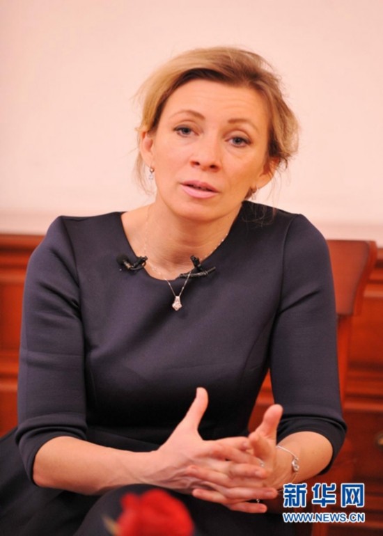 俄羅斯外交部新聞司司長、新聞發(fā)言人扎哈羅娃接受采訪。新華網發(fā) 徐昕攝