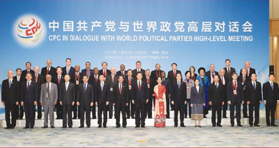 2017年11月30日,中國共產(chǎn)黨與世界政黨高層對話會在北京召開。12月1日,習近平總書記在會上發(fā)表講話時這樣說:中國共產(chǎn)黨愿廣交天下朋友。長期以來,中國共產(chǎn)黨同世界上160多個國家和地區(qū)的400多個政黨和政治組織保持著經(jīng)常性聯(lián)系,“朋友圈”不斷擴大。面向未來,中國共產(chǎn)黨愿同世界各國政黨加強往來,分享治黨治國經(jīng)驗,開展文明交流對話,增進彼此戰(zhàn)略信任,同世界各國人民一道,推動構建人類命運共同體,攜手建設更加美好的世界!