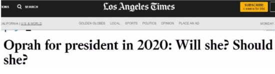 《華盛頓郵報(bào)》博主Jennifer Rubin也對(duì)奧普拉贊不絕口:“我們可以有一位表達(dá)清晰、受教良好、和藹可親、腳踏實(shí)地,同時(shí)又尊重我們民主機(jī)制的總統(tǒng)了!