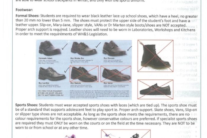 據(jù)悉,學(xué)校規(guī)定,學(xué)生必須穿黑色系帶皮鞋,鞋跟必須在5毫米到20毫米之間,并發(fā)布了圖片說(shuō)明鞋子的標(biāo)準(zhǔn)和零售商。
