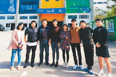 | 沈惟強(qiáng)(右三)和老師與同學(xué)們參加第十屆清州國際藝術(shù)展時(shí)的合影。 |