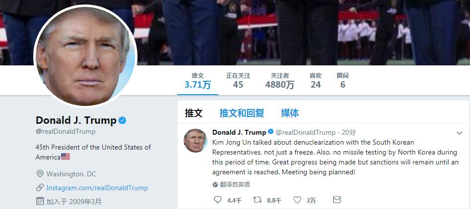 特朗普8日發(fā)推特說,開始計(jì)劃會(huì)晤。